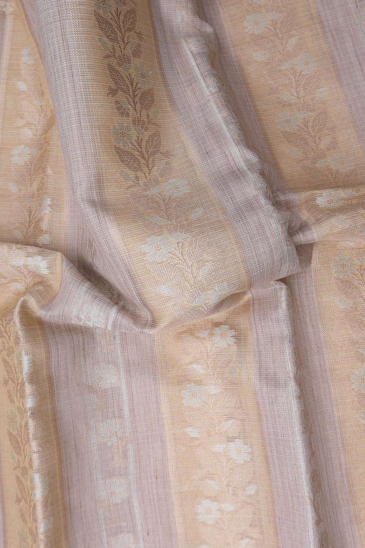 Kota Cotton Saree In Cream And Yellow With Stripes Design