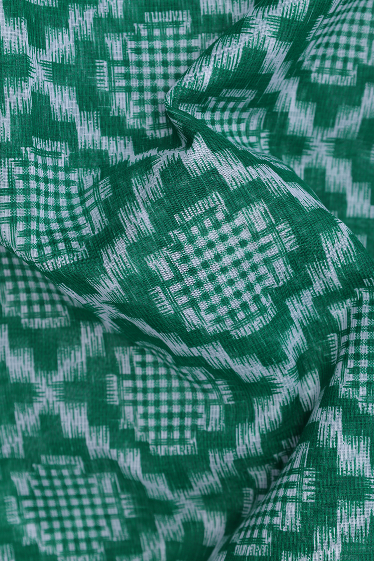 Elevate your ensemble with this exquisite kota cotton saree in a captivating green hue. Adorned with an elegant diamond design, this lightweight textile offers breathable comfort while maintaining a refined appearance. The traditional craftsmanship and contemporary pattern create a sophisticated balance, perfect for both formal gatherings and cultural celebrations.
