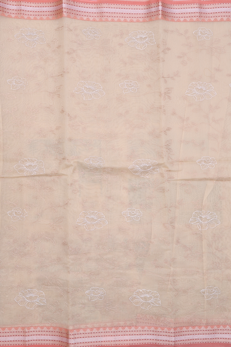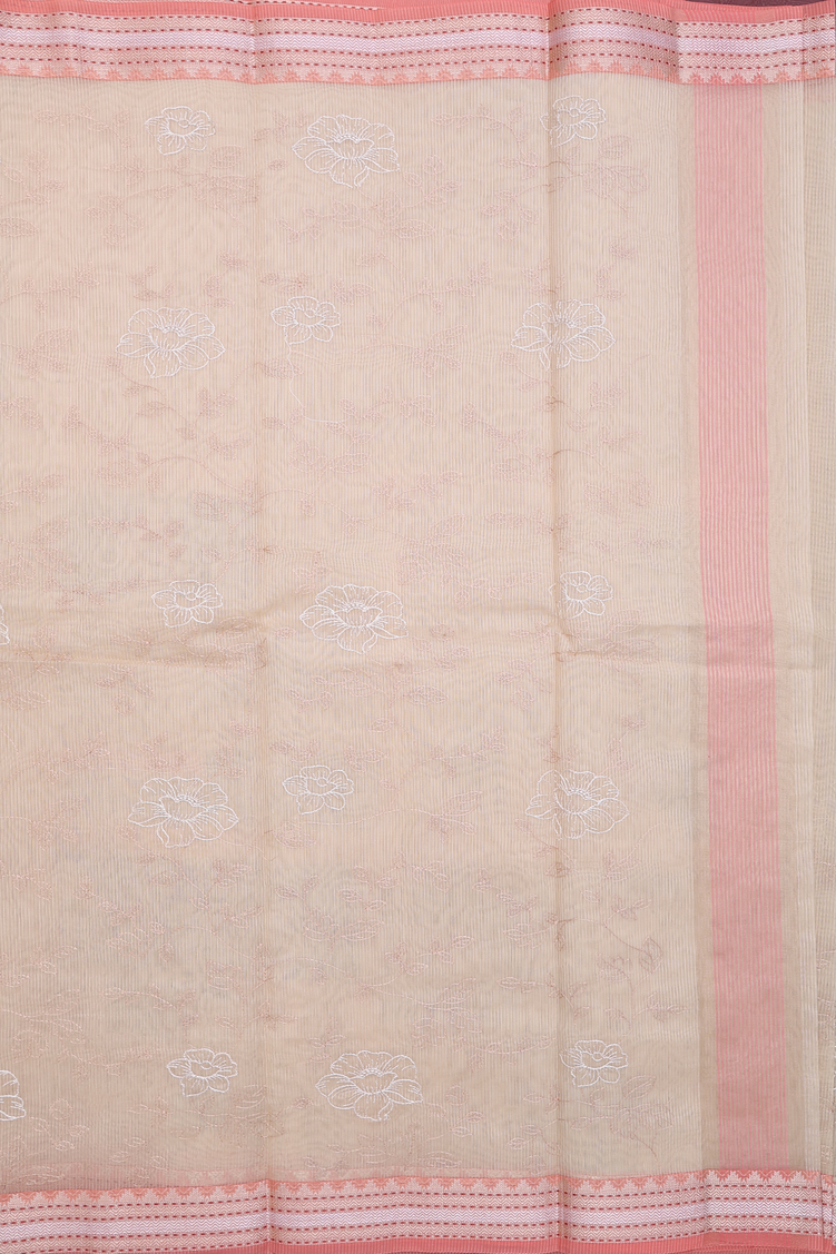 Kota Cotton Saree In Pastel Brown With Floral Design