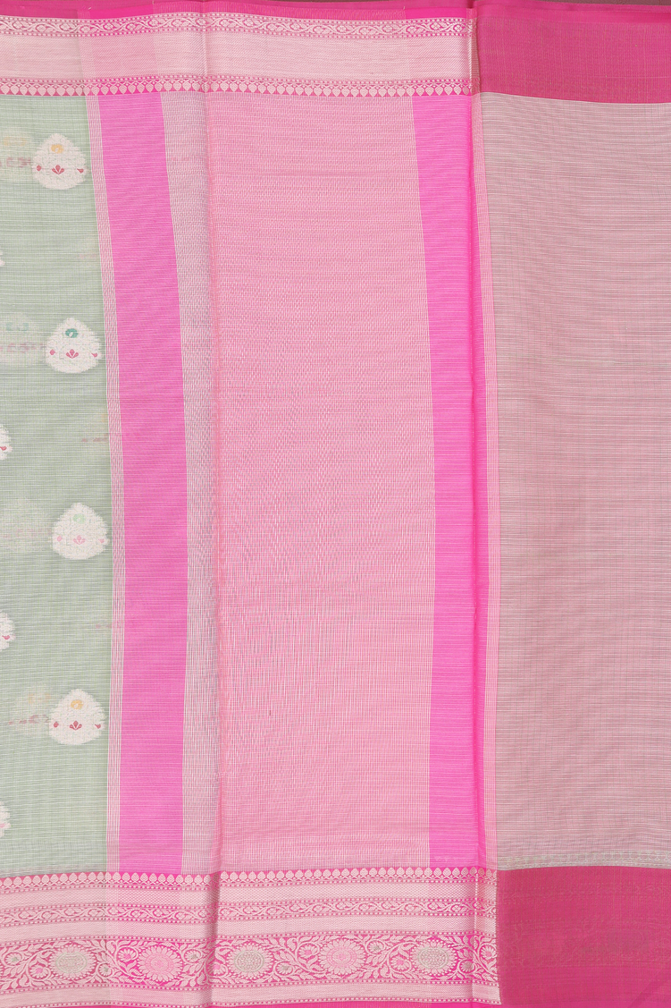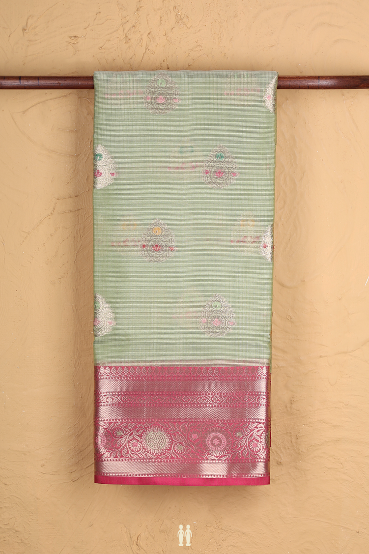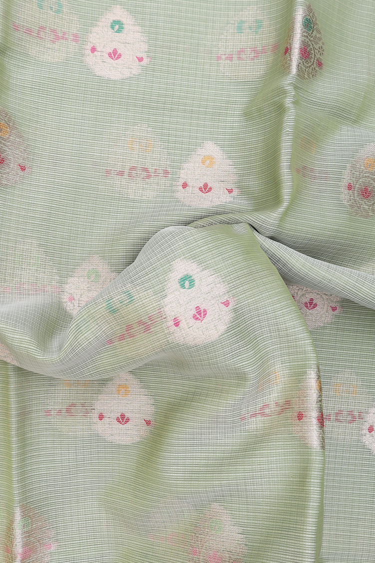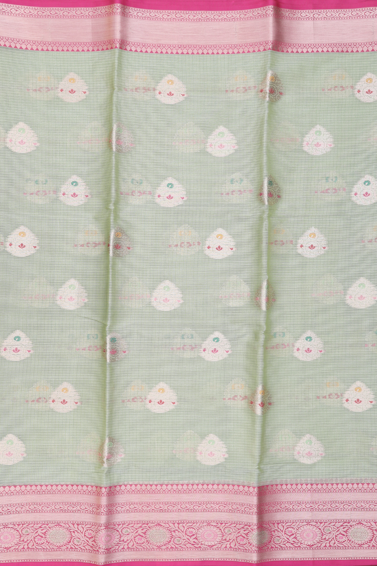 Kota Cotton Saree In Pastel Green With Zari Buttas