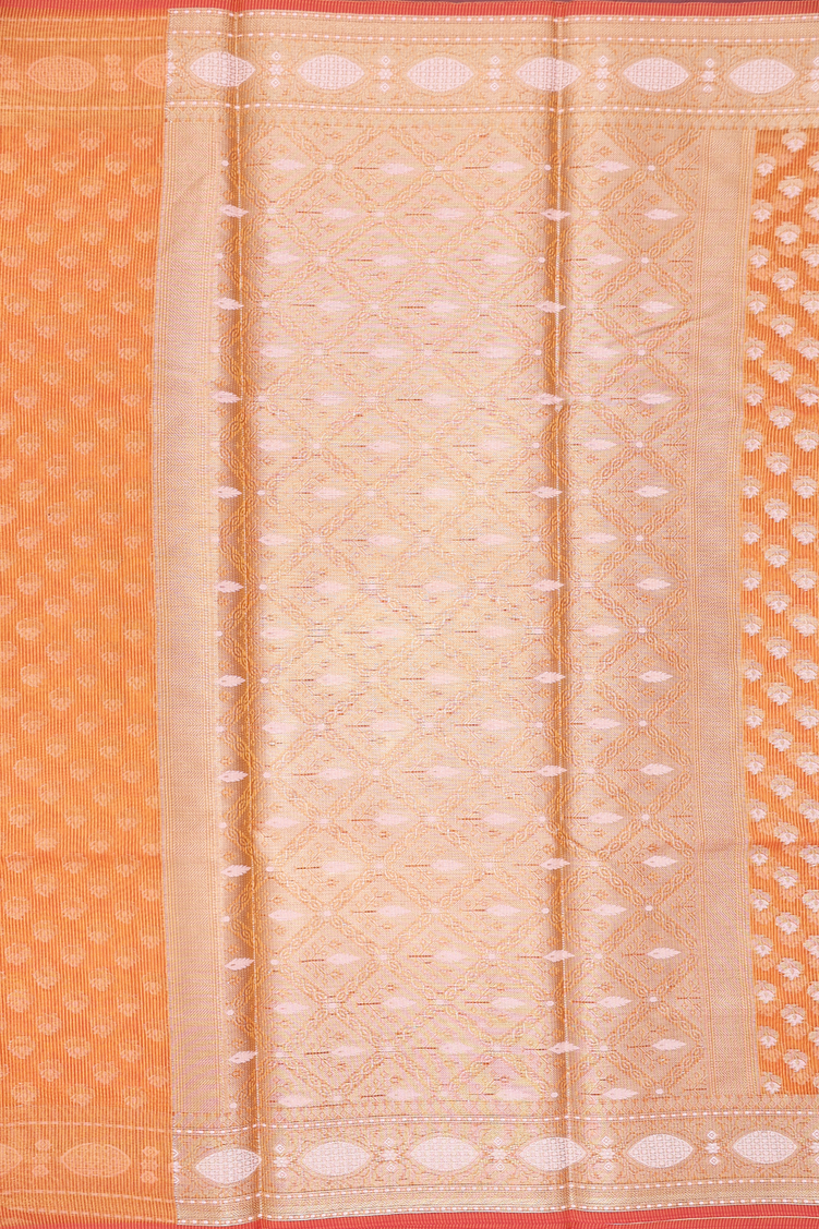 Kota Cotton Saree In Orange With Floral Buttas