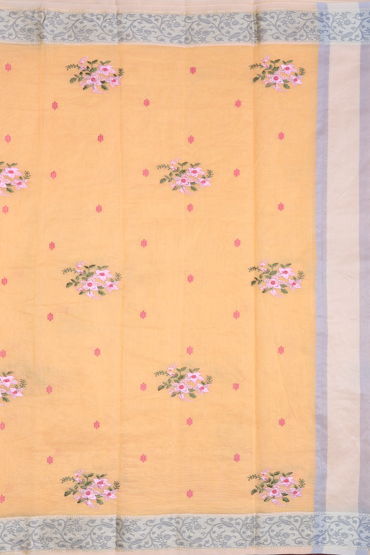 Kota Cotton Saree In Orange With Floral Design
