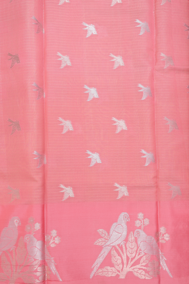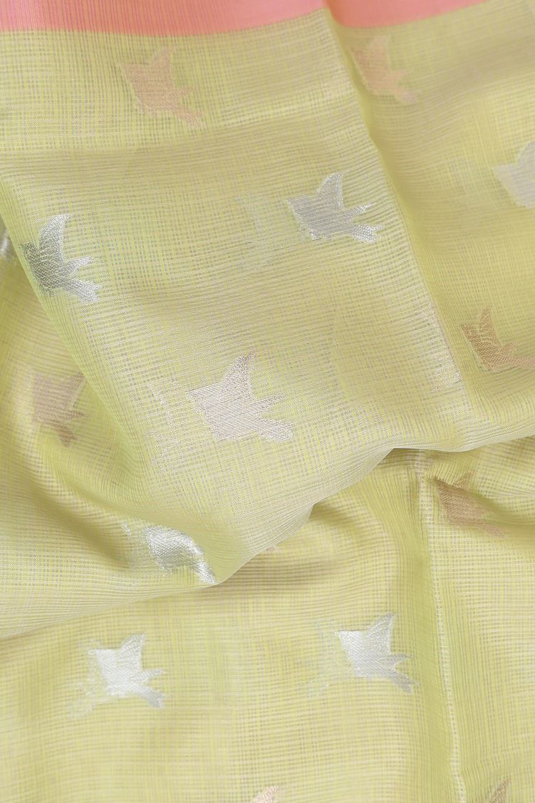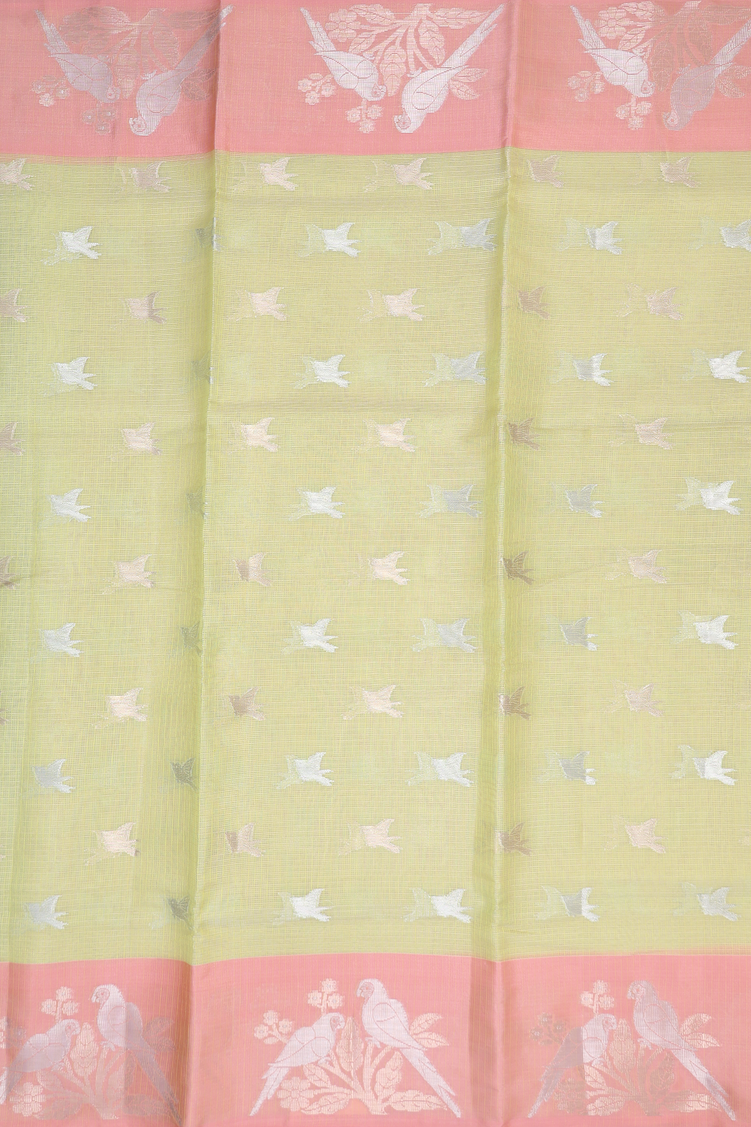 Kota Cotton Saree In Pastel Green With Birds Buttas