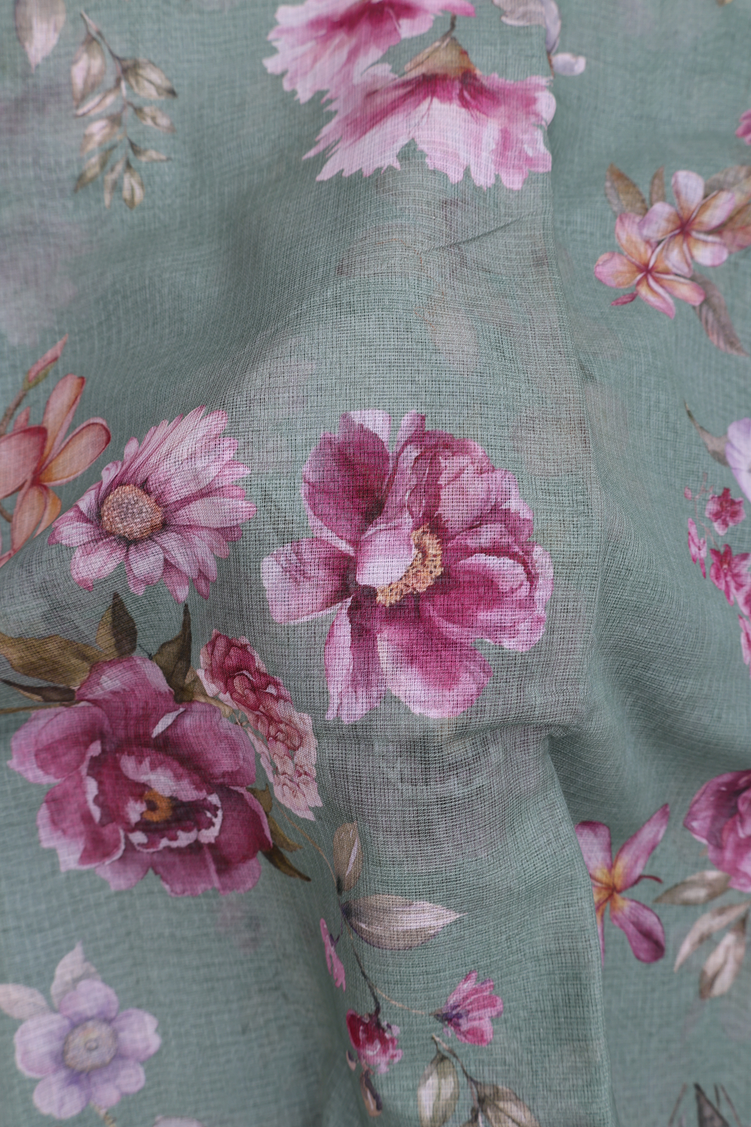 Kota Cotton Saree In Pastel Green With Floral Printed Design