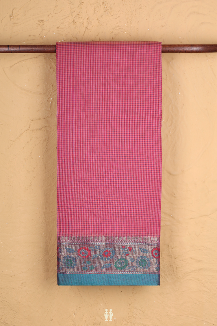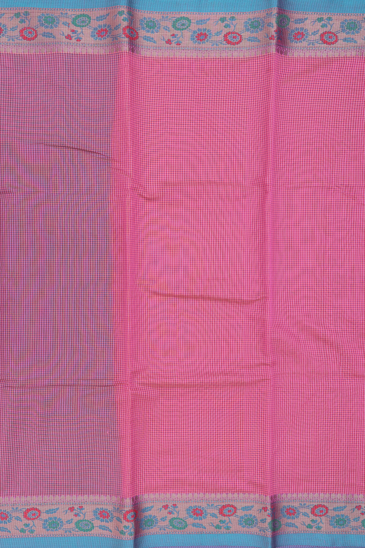 Elevate your everyday elegance with this exquisite kota cotton saree in soft pink, adorned with a refined checks design. Crafted from premium kota cotton, this saree offers breathable comfort and a graceful drape that flatters every silhouette. The subtle geometric pattern adds contemporary sophistication while maintaining traditional charm. Perfect for casual gatherings, festive occasions, or everyday wear, this versatile piece seamlessly transitions from day to evening.Â