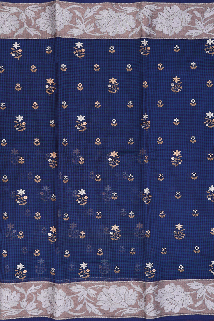 Kota Cotton Saree In Prussian Blue With Floral Buttas