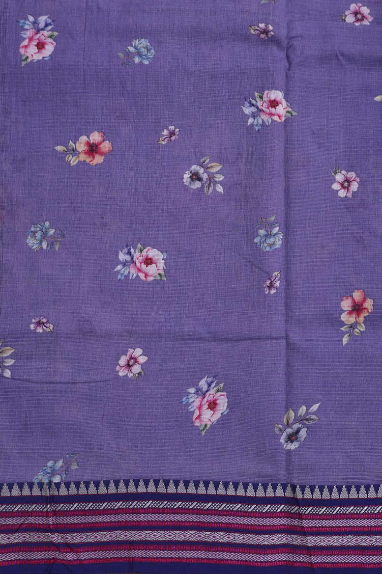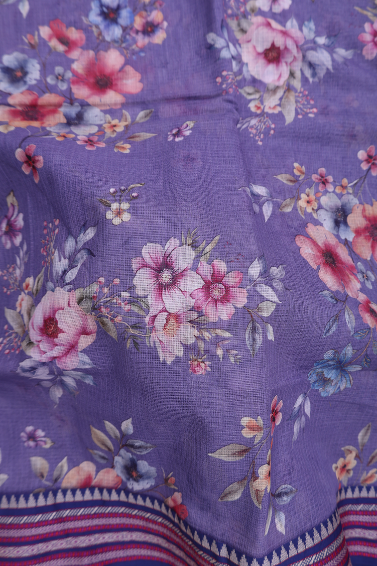 Elevate your everyday elegance with this exquisite kota cotton saree in rich purple, adorned with delicate floral prints that capture timeless grace. Crafted from breathable Kota cotton, this saree offers superior comfort and a refined drape, making it ideal for both casual gatherings and festive occasions. The intricate floral design adds a touch of sophistication while maintaining the saree's classic appeal. Perfect for those who appreciate traditional craftsmanship blended with contemporary style, this piece celebrates the artistry of Indian textile heritage.