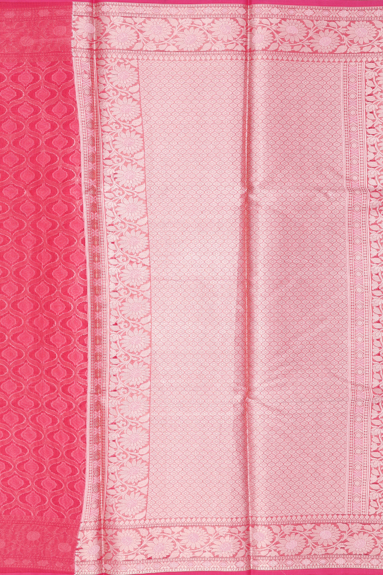 Kota Cotton Saree In Rose Red With Scallop Design