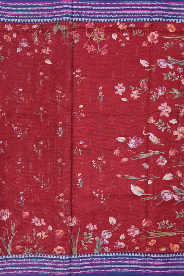 Kota Silk Saree In Rust Red With Floral Design