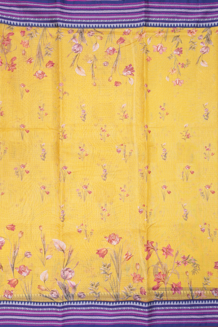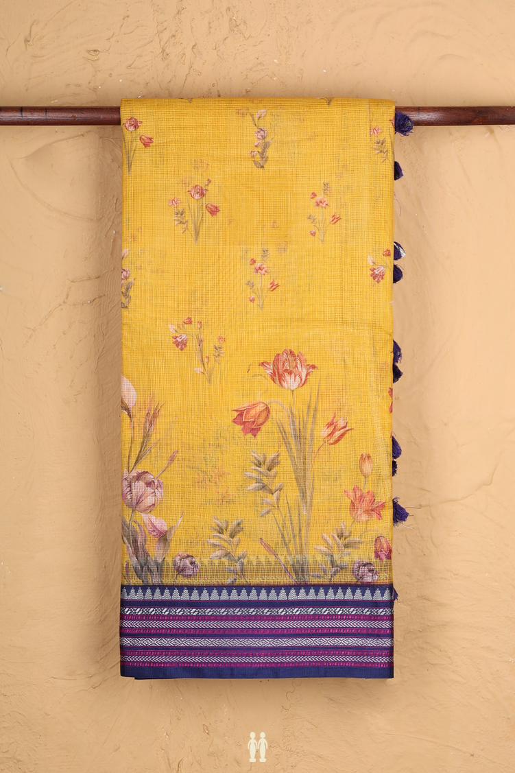 Radiate understated grace with this luminous kota silk saree in golden yellow, featuring intricate floral embellishments that dance across the fabric. The natural translucency and fluid drape of kota silk create an ethereal quality, while its lightweight composition ensures all-day comfort without compromising on elegance. The carefully rendered floral motifs showcase exceptional weaving precision, honoring traditional techniques with contemporary sensibility. Perfect for those seeking a piece that balances vibrant warmth with refined sophistication.