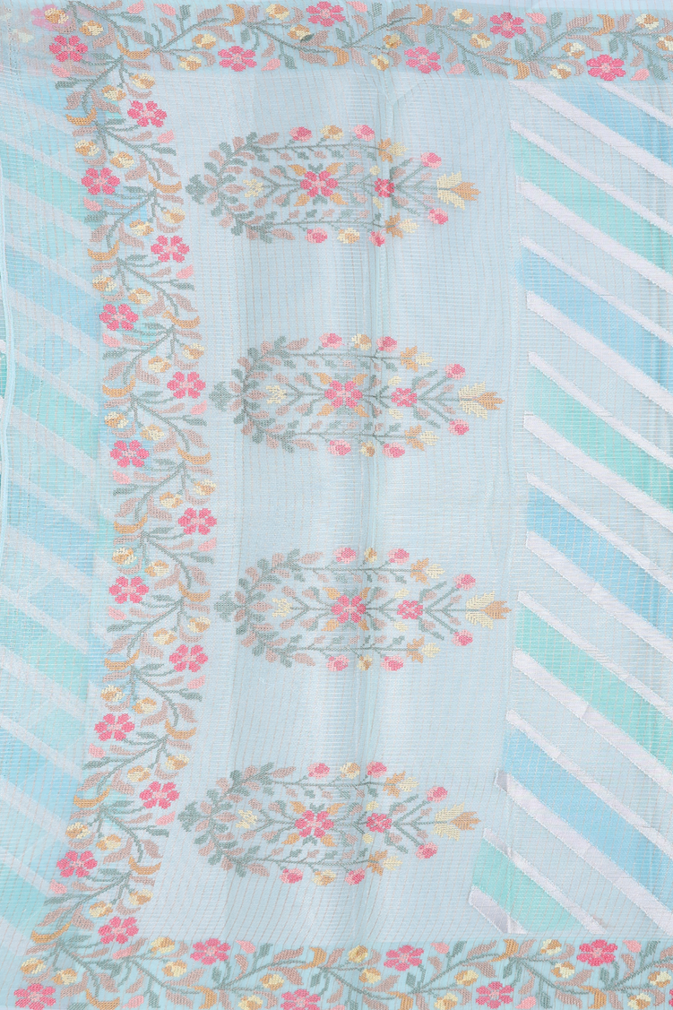 Kota Cotton Saree In Shades Of Blue With Diagonal Design