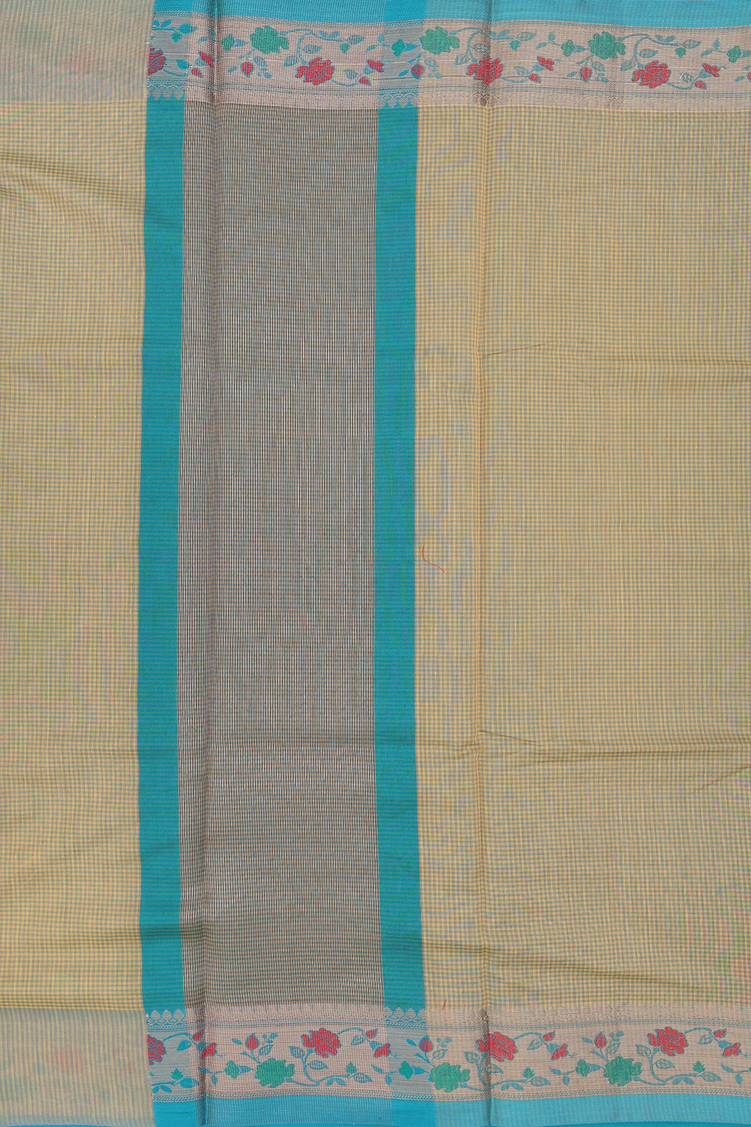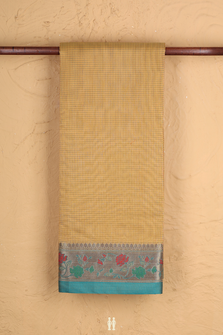 Kota Cotton Saree In Yellow With Checks Design