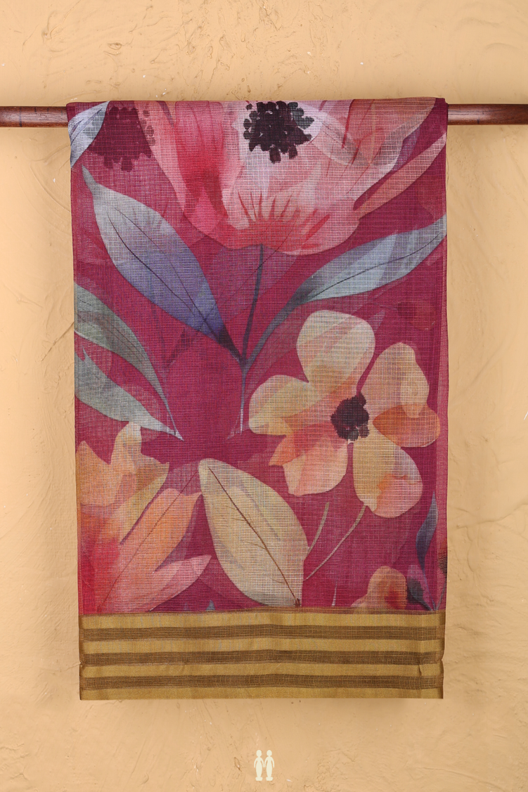 Kota Silk Saree In Berry Purple With Floral Design