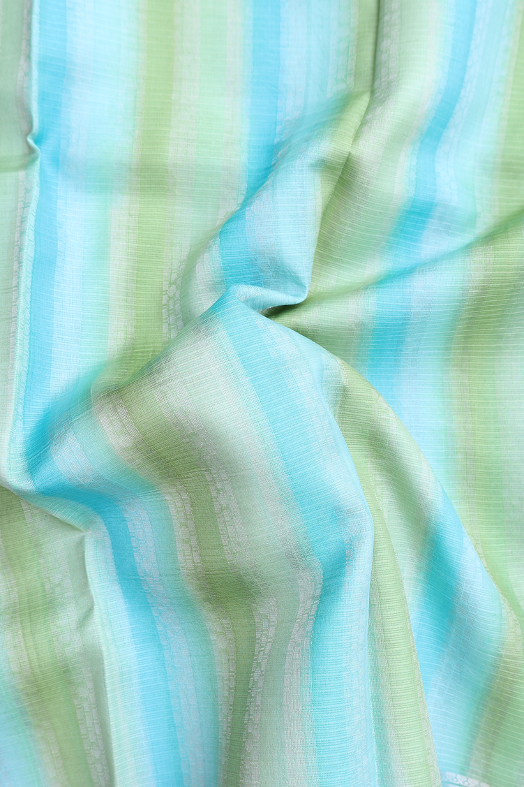 Kota Silk Saree In Green And Blue With Stripes Design