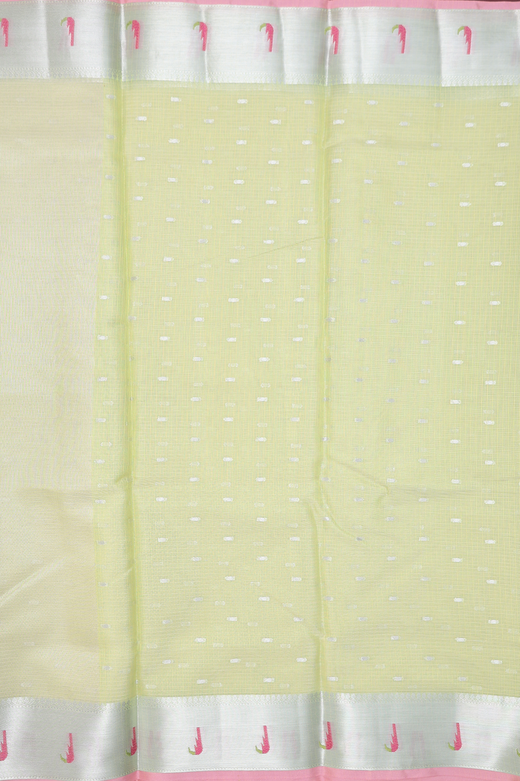 Kota Cotton Saree In Pastel Green With Zari Buttis