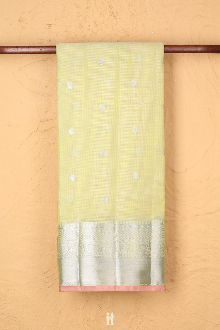 Kota Cotton Saree In Pastel Green With Zari Buttis
