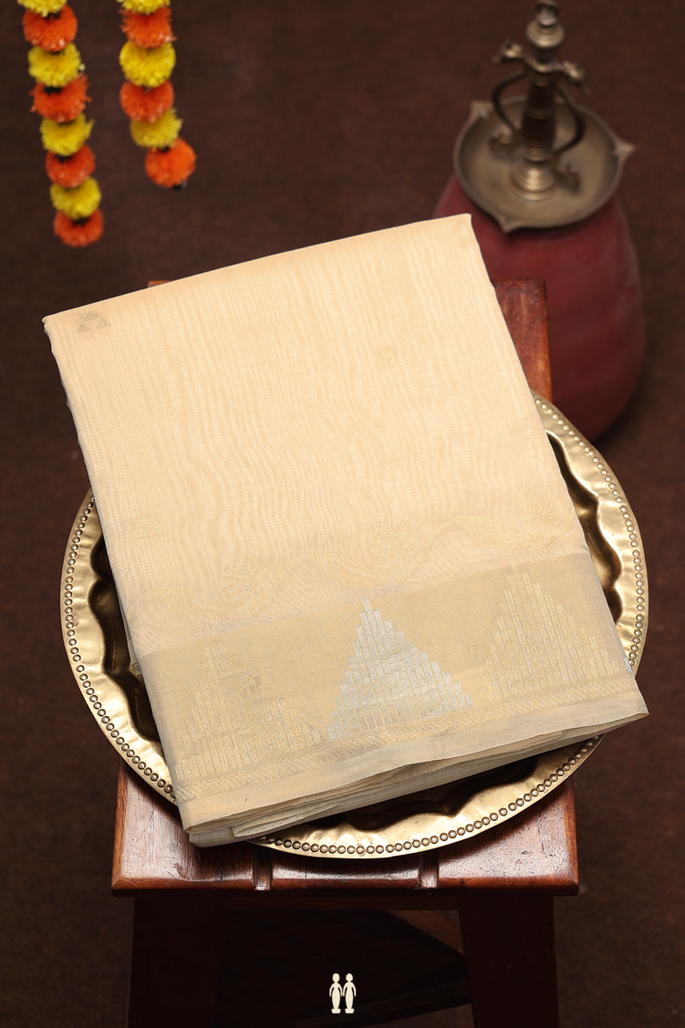 Kota Silk Saree In Pastel Tan With Zari Buttas