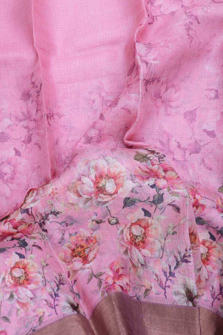 Elevate your ethnic wardrobe with this exquisite kota silk saree in a delicate pink hue. The lightweight, breathable fabric drapes beautifully while maintaining its elegant structure, making it perfect for both festive occasions and everyday wear. Adorned with intricate floral motifs, this saree showcases traditional craftsmanship with a contemporary aesthetic.Â
