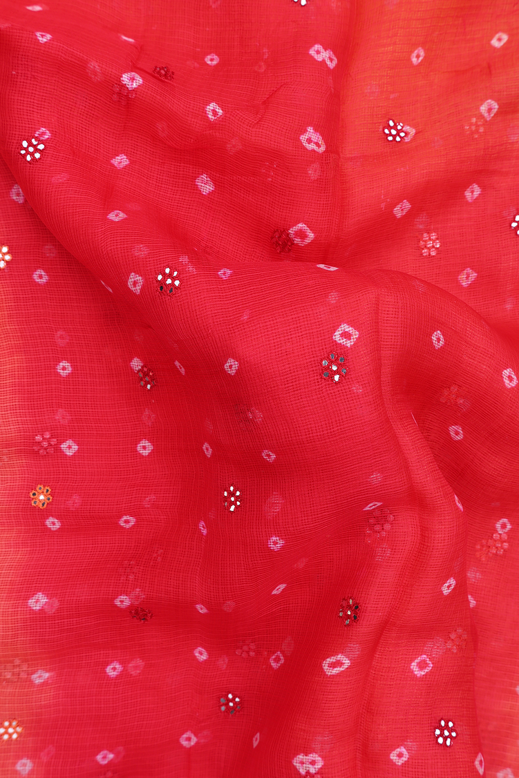 Kota Silk Saree In Red And Orange With Threadwork Buttas