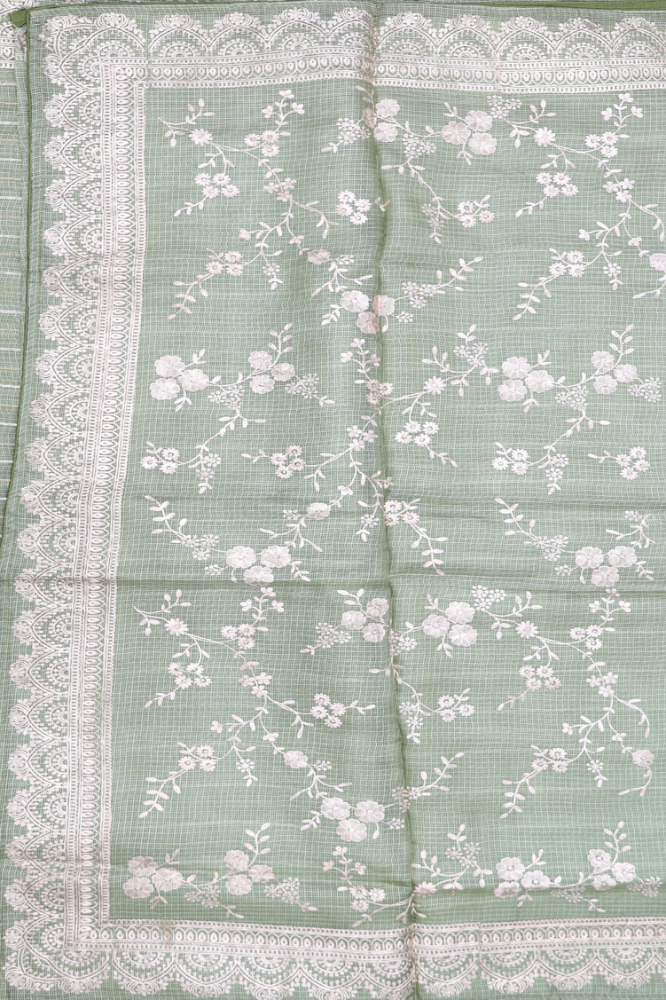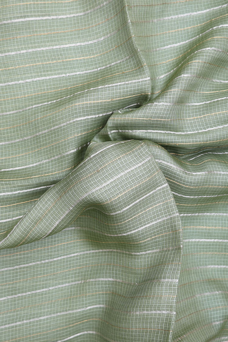 Elevate your elegance with this kota silk saree in a refined sage green hue. Featuring subtle stripes, its lightweight texture offers effortless grace and comfort. Perfect for occasions that demand understated sophistication, this saree blends traditional craftsmanship with modern style.