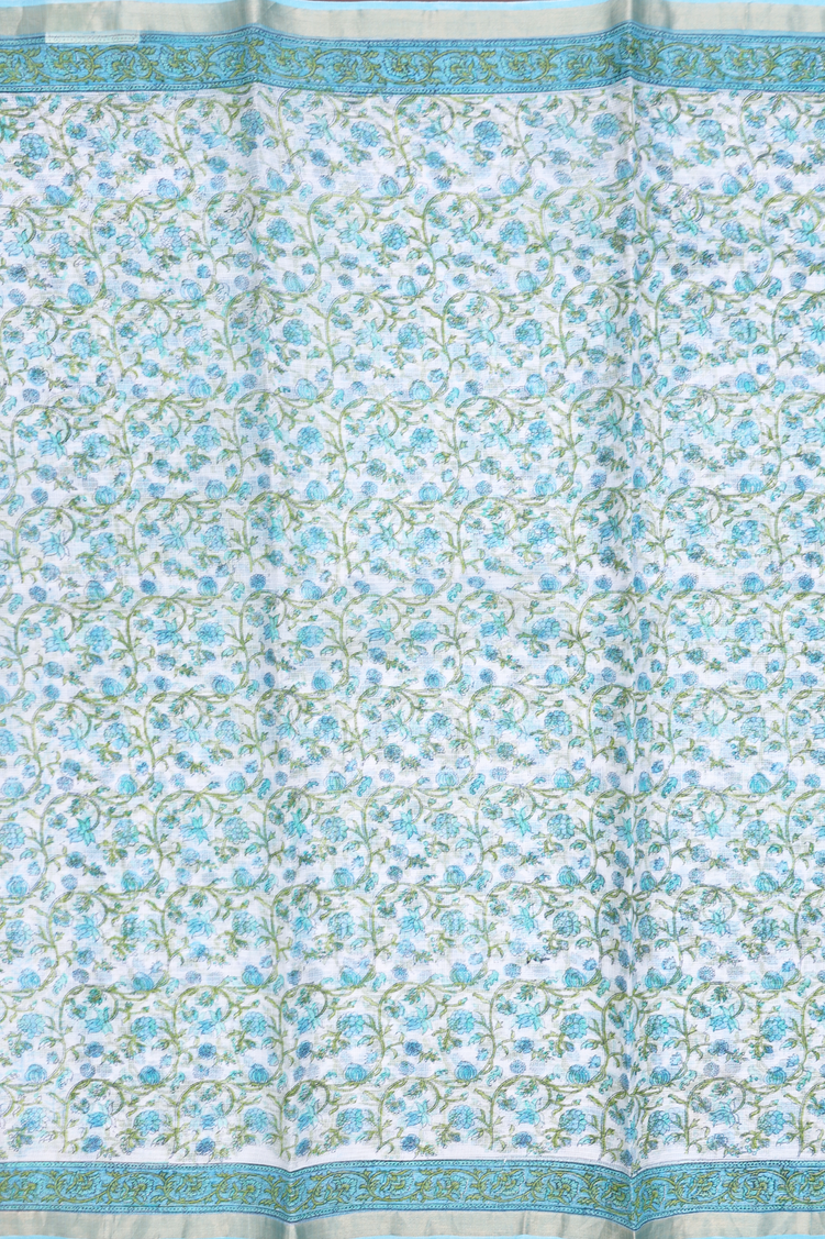 Elevate your elegance with this exquisite white kota silk saree, adorned with delicate floral designs. Crafted from lightweight, breathable silk, it offers a graceful drape and subtle sheen, perfect for both formal occasions and festive celebrations. The intricate floral motifs add a timeless charm, making it a refined choice for those who appreciate classic sophistication.