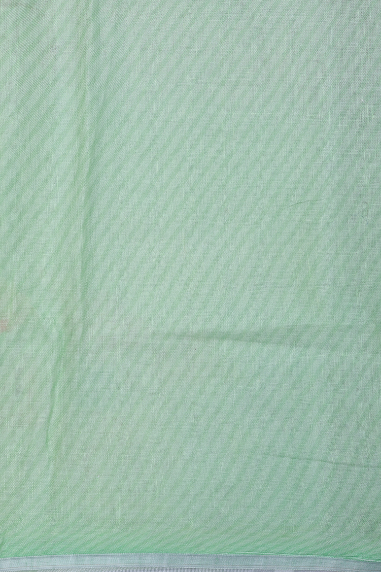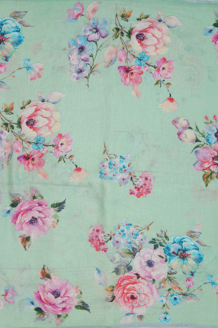 Linen Saree In Pale Green With Floral Printed Design