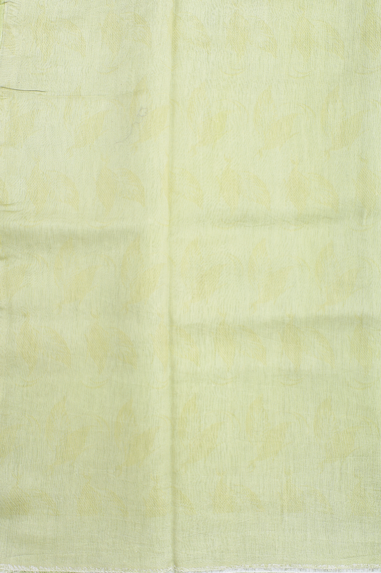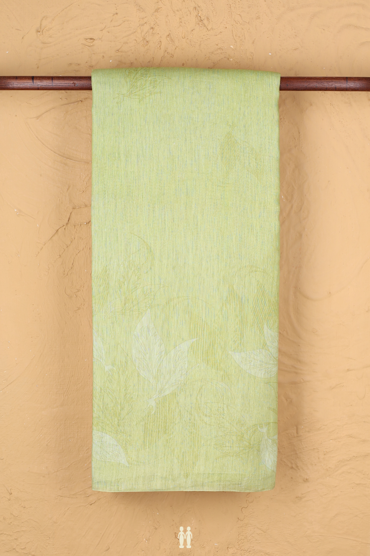 Linen Saree In Pear Green With Leaf Design
