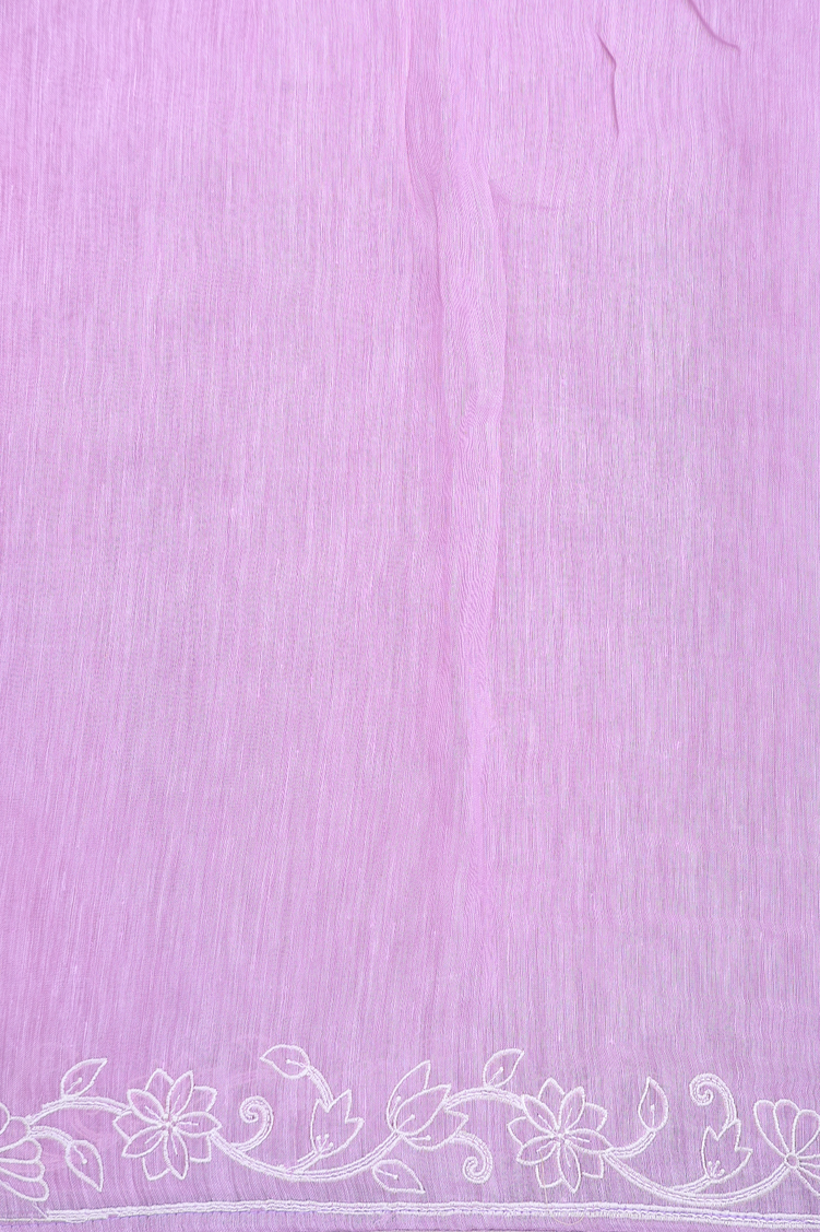 Linen Saree In Plain Pastel Purple With Floral Border