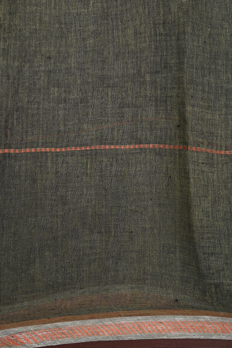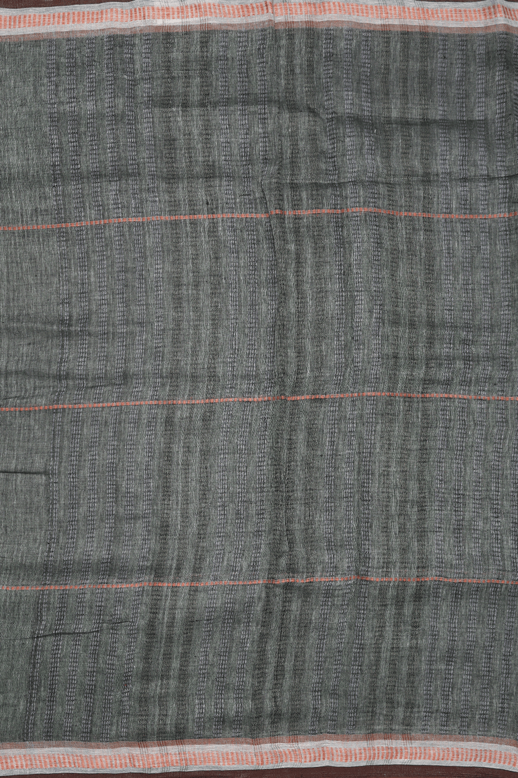 Elevate your elegance with this linen saree in a soothing sage green shade, artfully adorned with subtle stripes. Its breathable fabric ensures comfort while the understated design offers timeless sophistication, perfect for both formal occasions and refined everyday wear.