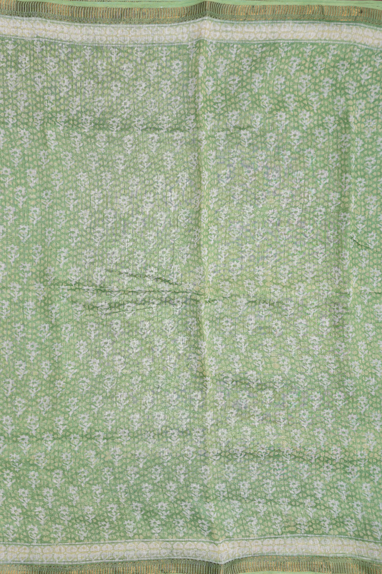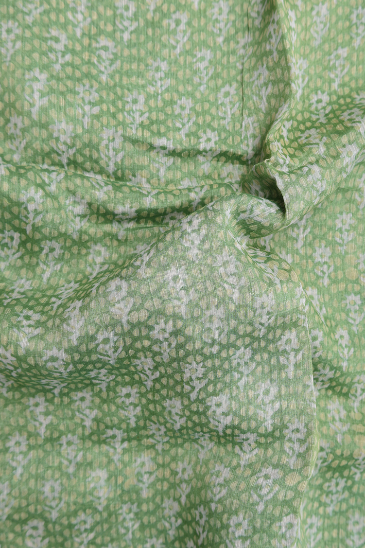 This linen saree in calming shades of green features a delicate floral print that adds a touch of timeless elegance. Its breathable fabric ensures comfort throughout the day, making it perfect for both formal occasions and casual gatherings. The understated design highlights your refined taste while embracing a natural, effortless style.