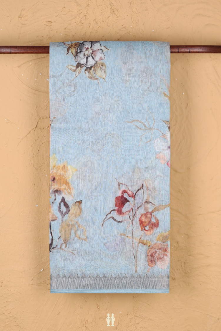 Elevate your ensemble with this exquisite linen saree in a serene sky blue shade, adorned with delicate floral patterns. Its lightweight fabric offers breathable comfort while the elegant design adds a touch of timeless sophistication, perfect for both casual gatherings and formal occasions. This saree effortlessly blends classic charm with subtle modernity, making it a versatile addition to your wardrobe.