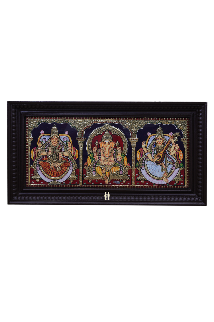 Lord Lakshmi Ganesha And Saraswathi Tanjore Painting