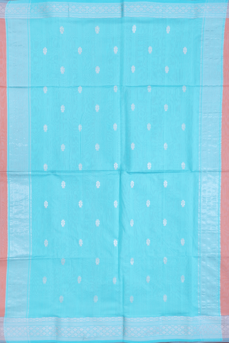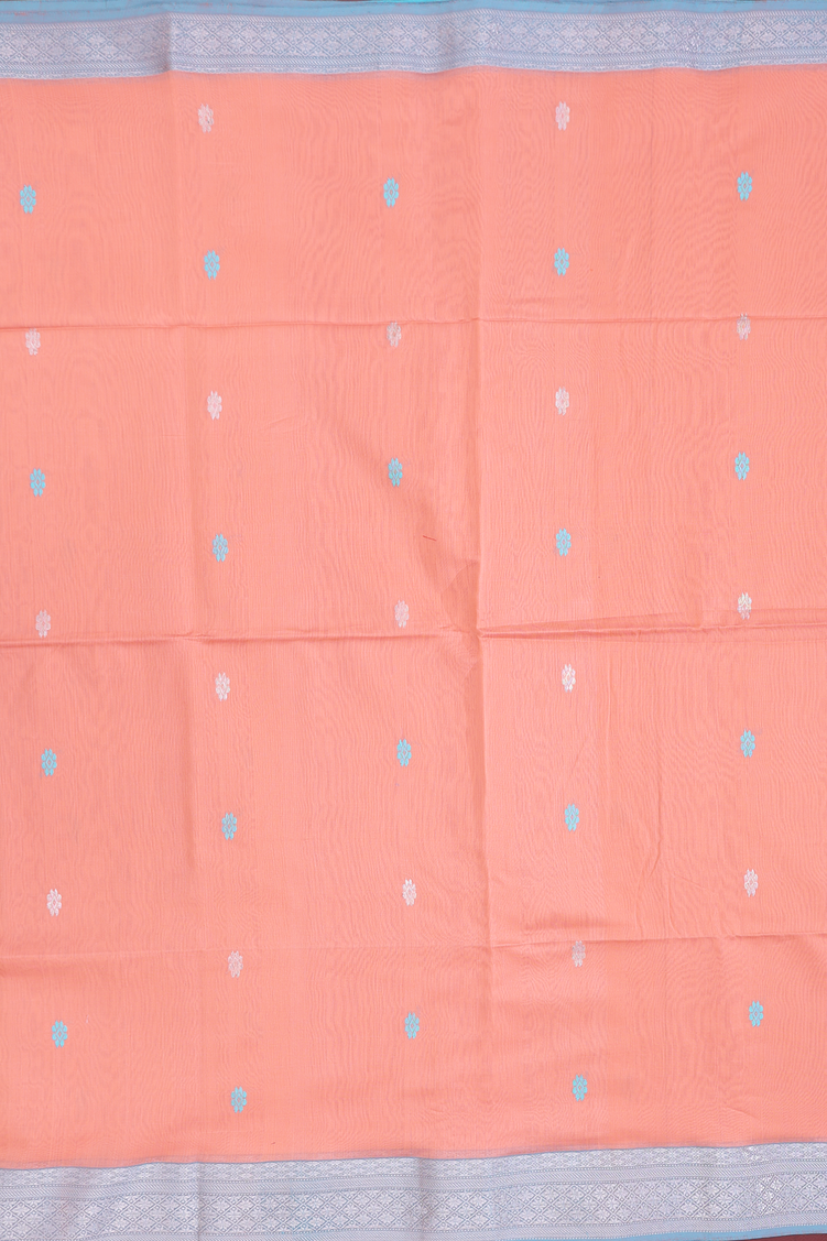 Maheswari Silk Cotton Saree Blush Orange With Allover Buttas