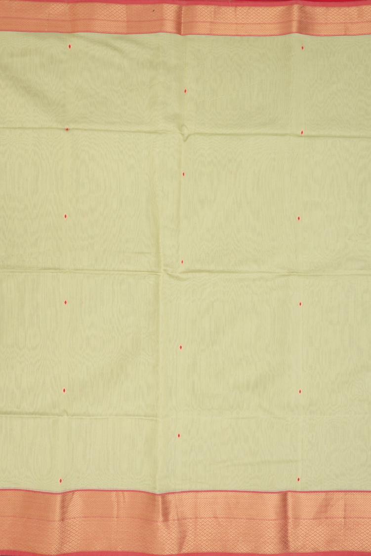Maheswari Silk Cotton Saree Green With Zari Buttas