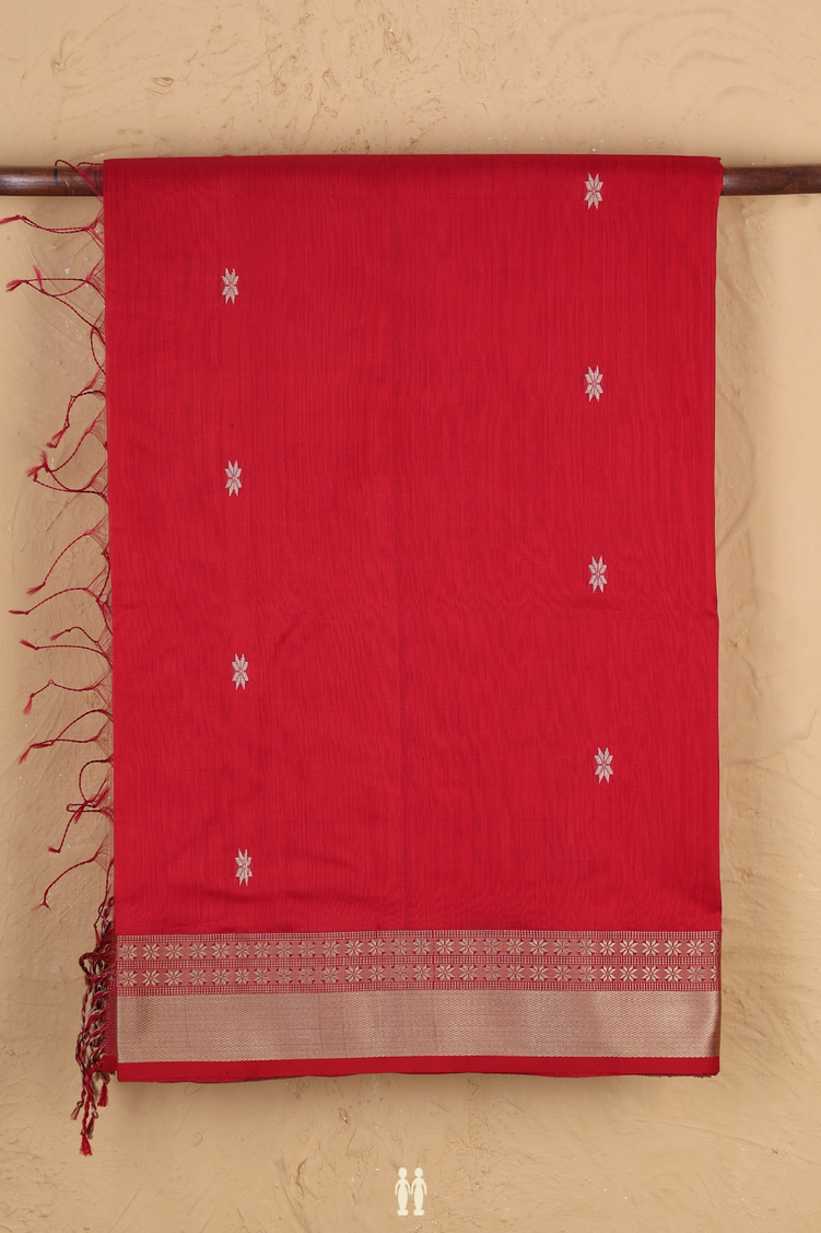 Maheswari Silk Cotton Saree In Chilli Red With Floral Buttas