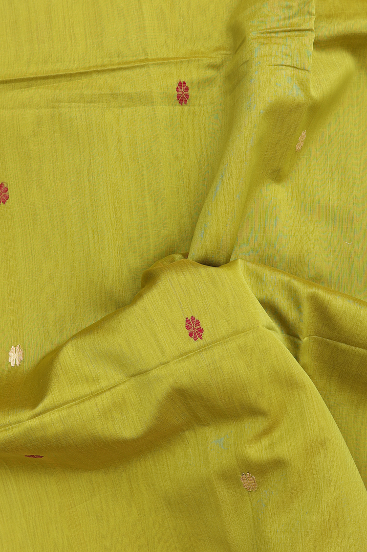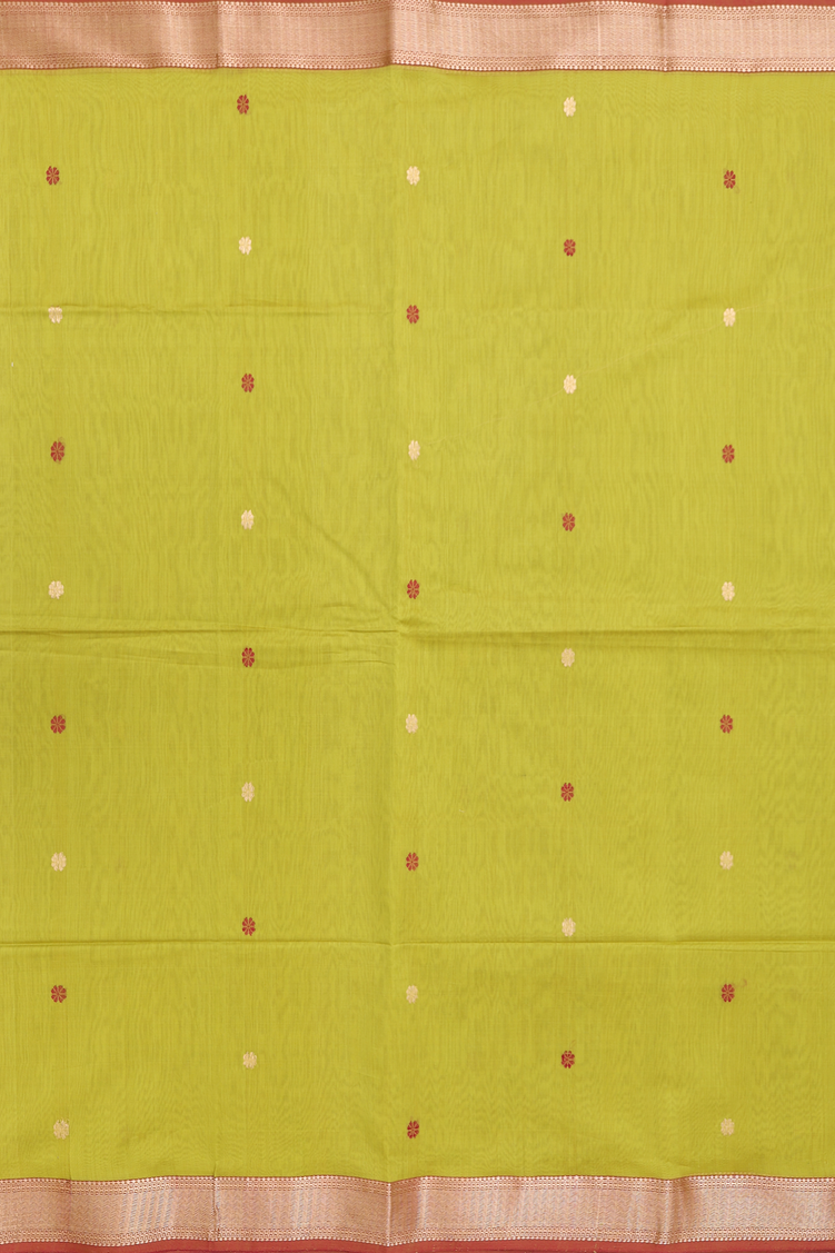 Maheswari Silk Cotton Saree In Pear Green With Floral Buttas