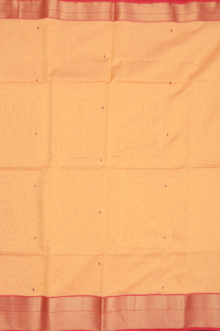 Maheswari Silk Cotton Saree In Orange With Zari Buttas