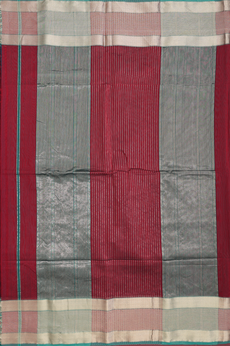 Maheswari Silk Cotton Saree In Red With Contrast Border