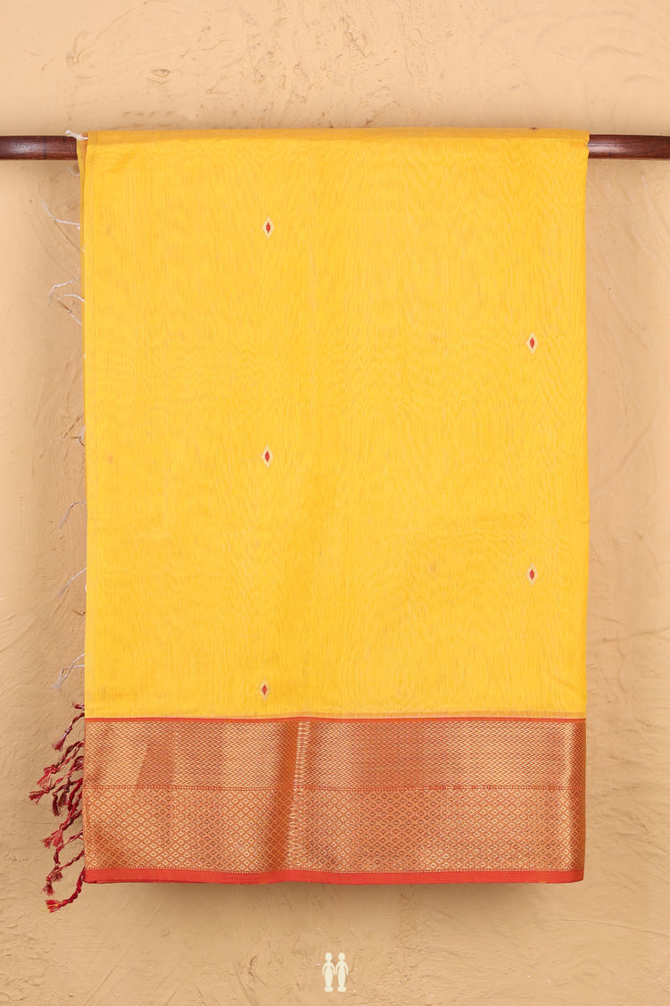 Maheswari Silk Cotton Saree In Yellow With Diamond Buttas