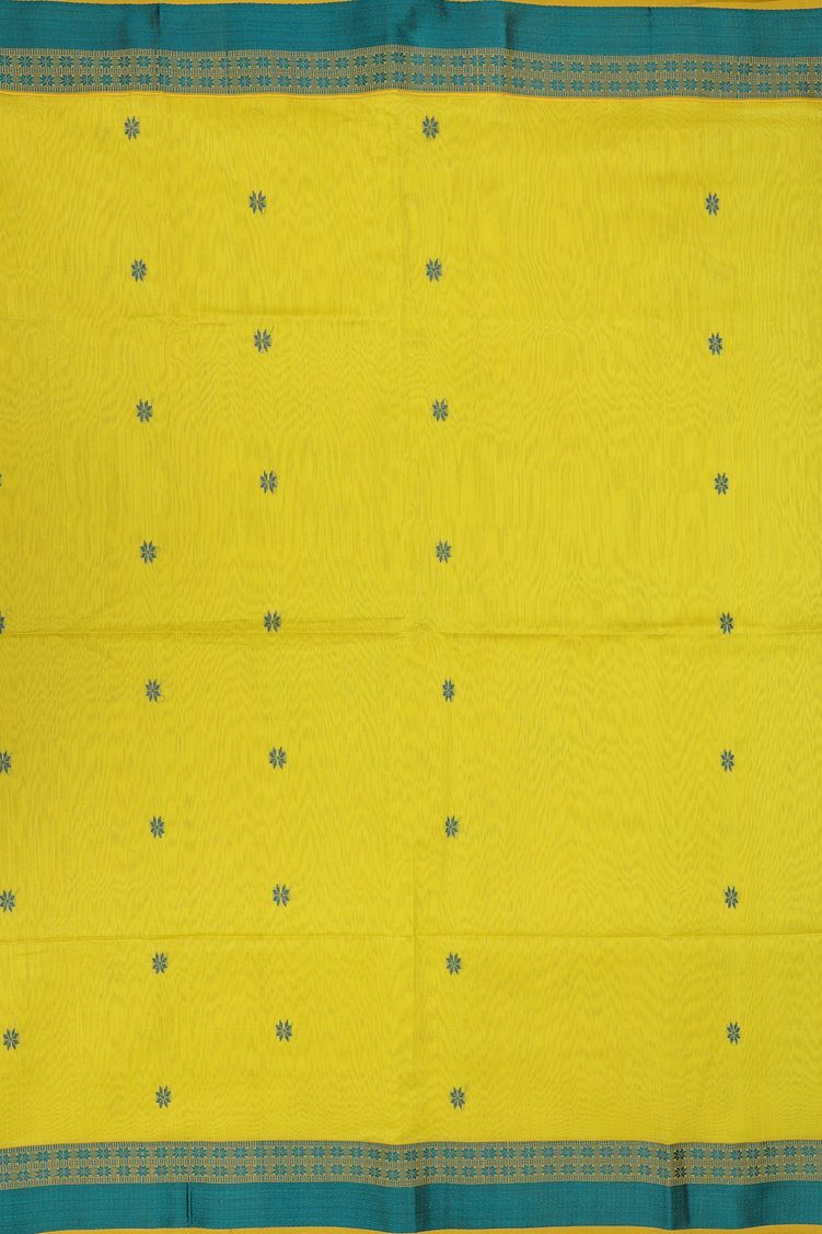 Maheswari Silk Cotton Saree In Yellow With Floral Buttas