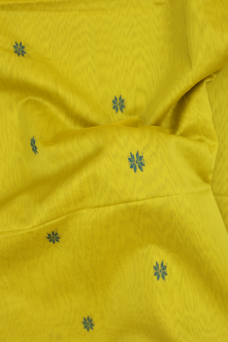 Experience the timeless elegance of this Maheswari silk cotton saree in vibrant sunflower yellow, adorned with delicate floral buttas that add traditional charm. The perfect blend of silk and cotton creates a lightweight, breathable fabric ideal for all-day comfort. This versatile saree transitions seamlessly from casual gatherings to festive occasions, making it a wardrobe essential. The intricate floral motifs showcase authentic craftsmanship, while the rich yellow hue complements all skin tones beautifully.