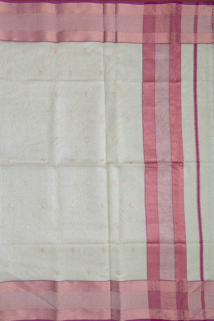 Maheswari Silk Cotton Saree Pale Green Stripes Along Buttas