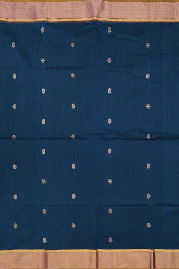 Maheswari Silk Cotton Saree Prussian Blue With Floral Buttas