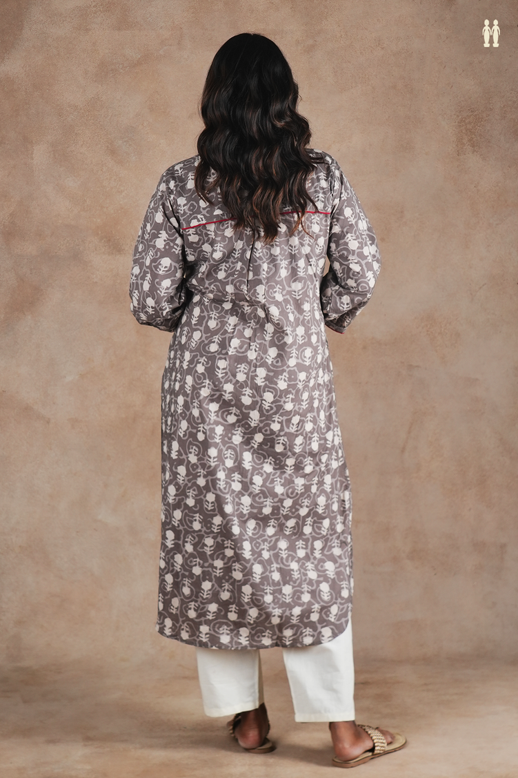 Mandarin Neck Allover Design Grey Cotton Long Kurta