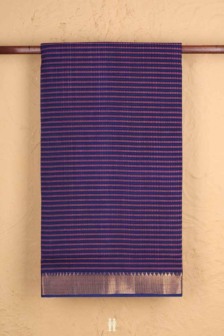 Mangalagiri Cotton Saree Blue And Purple With Stripes Design