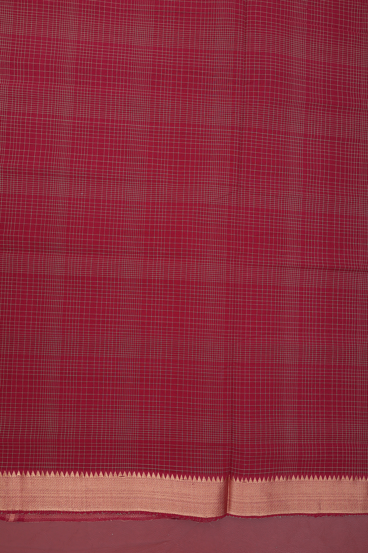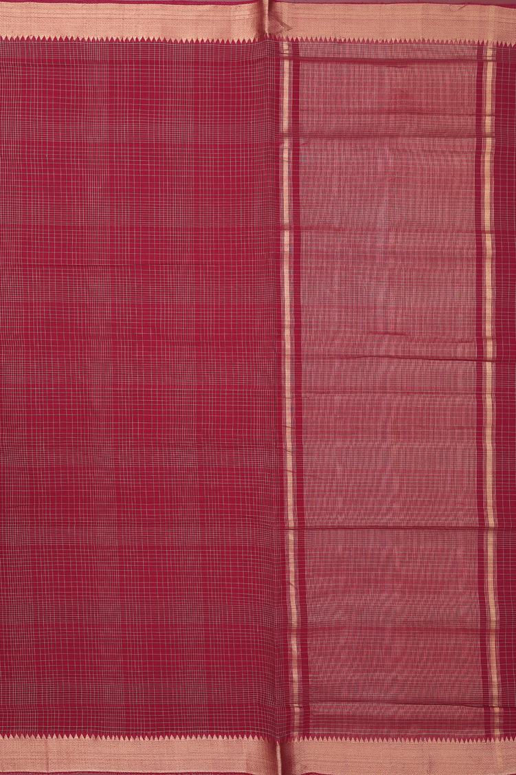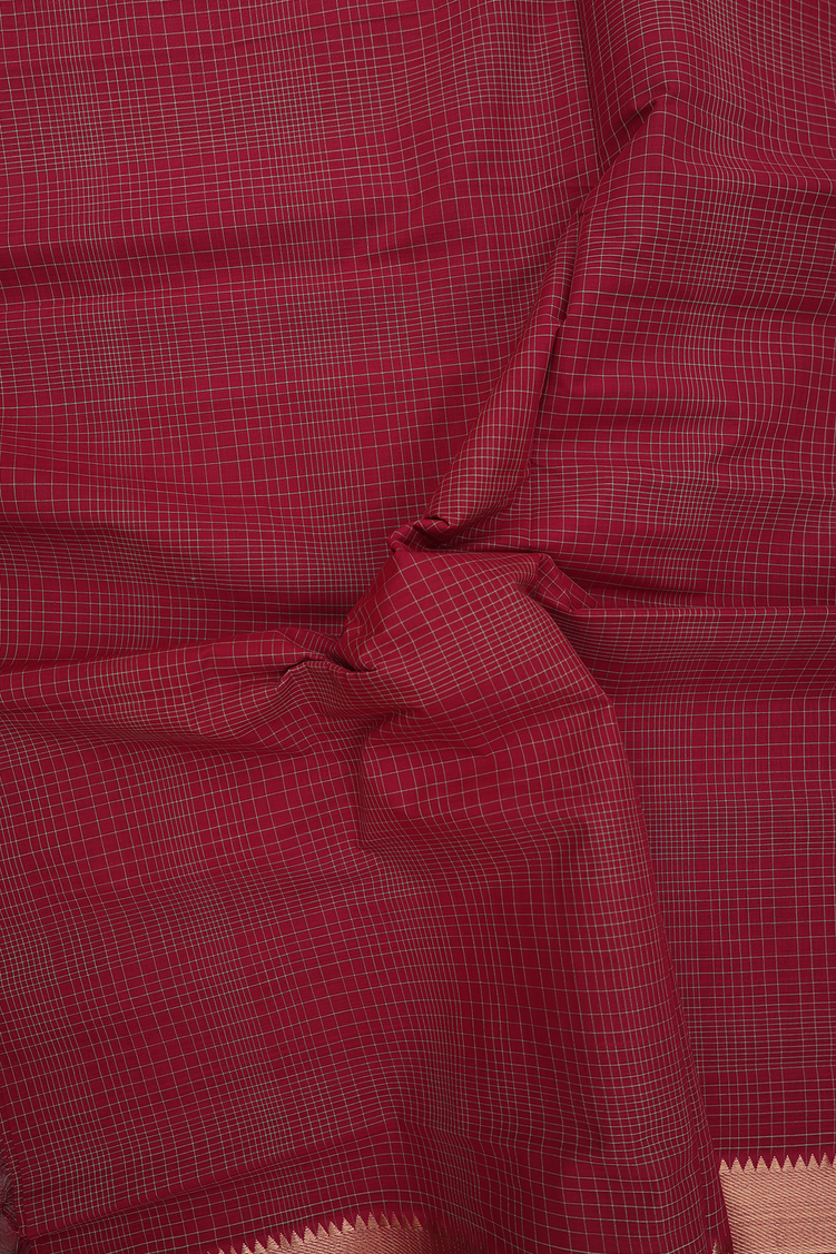 Mangalagiri Cotton Saree In Burgundy Red With Checks Design