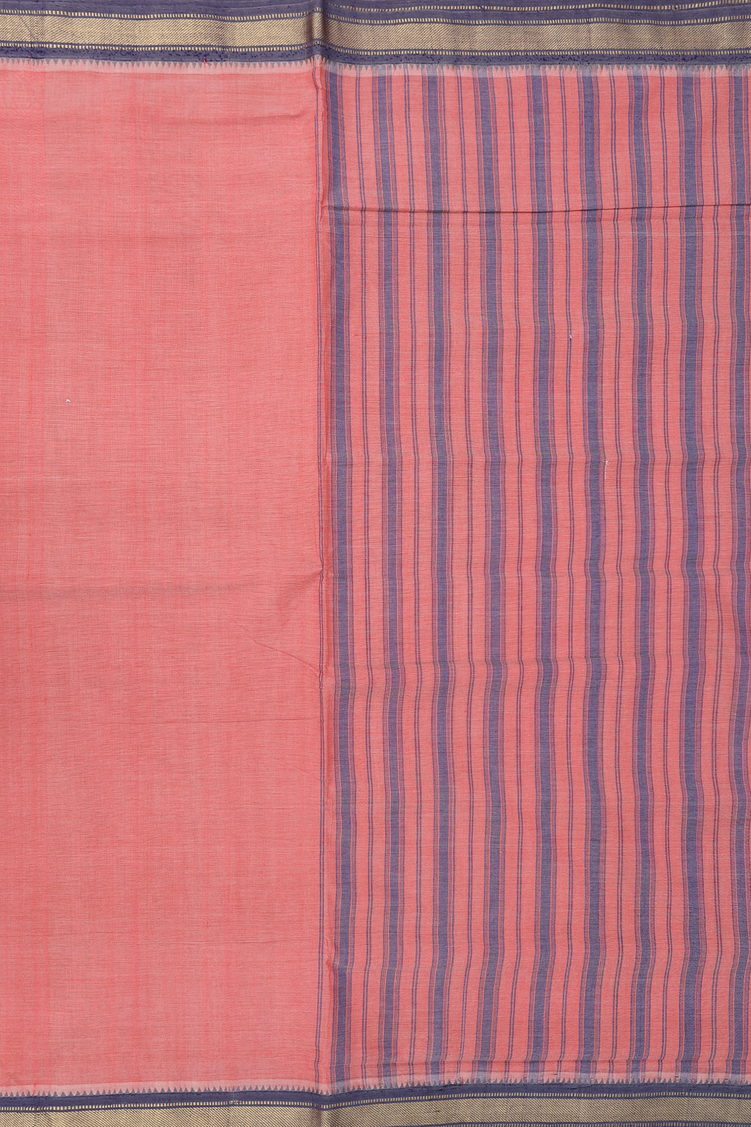 Mangalagiri Cotton Saree In Dusty Red With Contrast Border