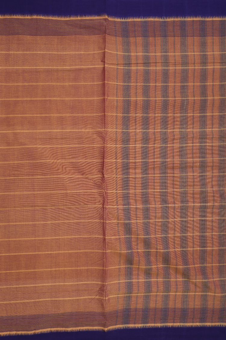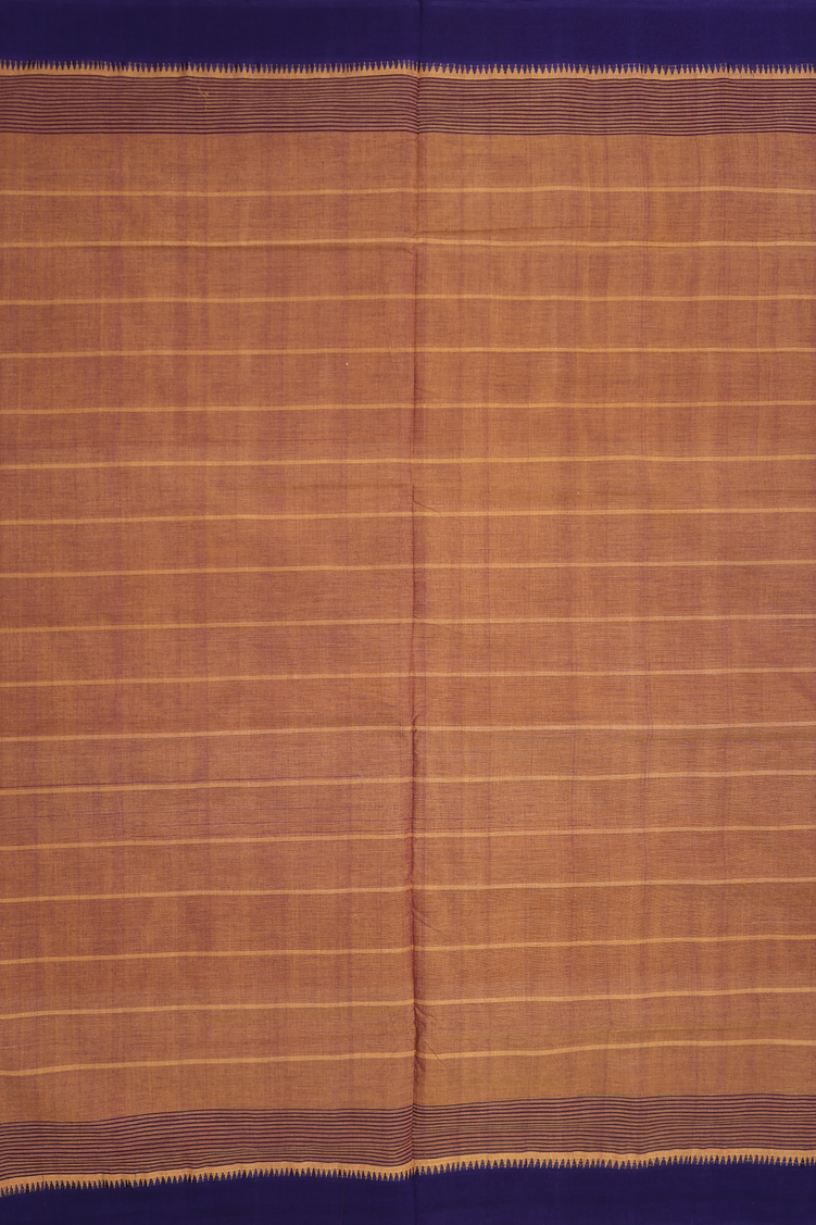 Mangalagiri Cotton Saree In Saddle Brown With Stripes Design