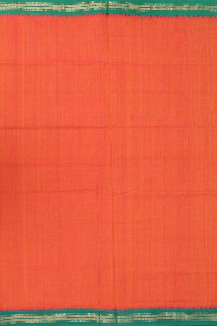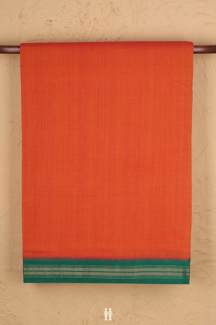 Mangalagiri Cotton Saree In Orange With Contrast Border