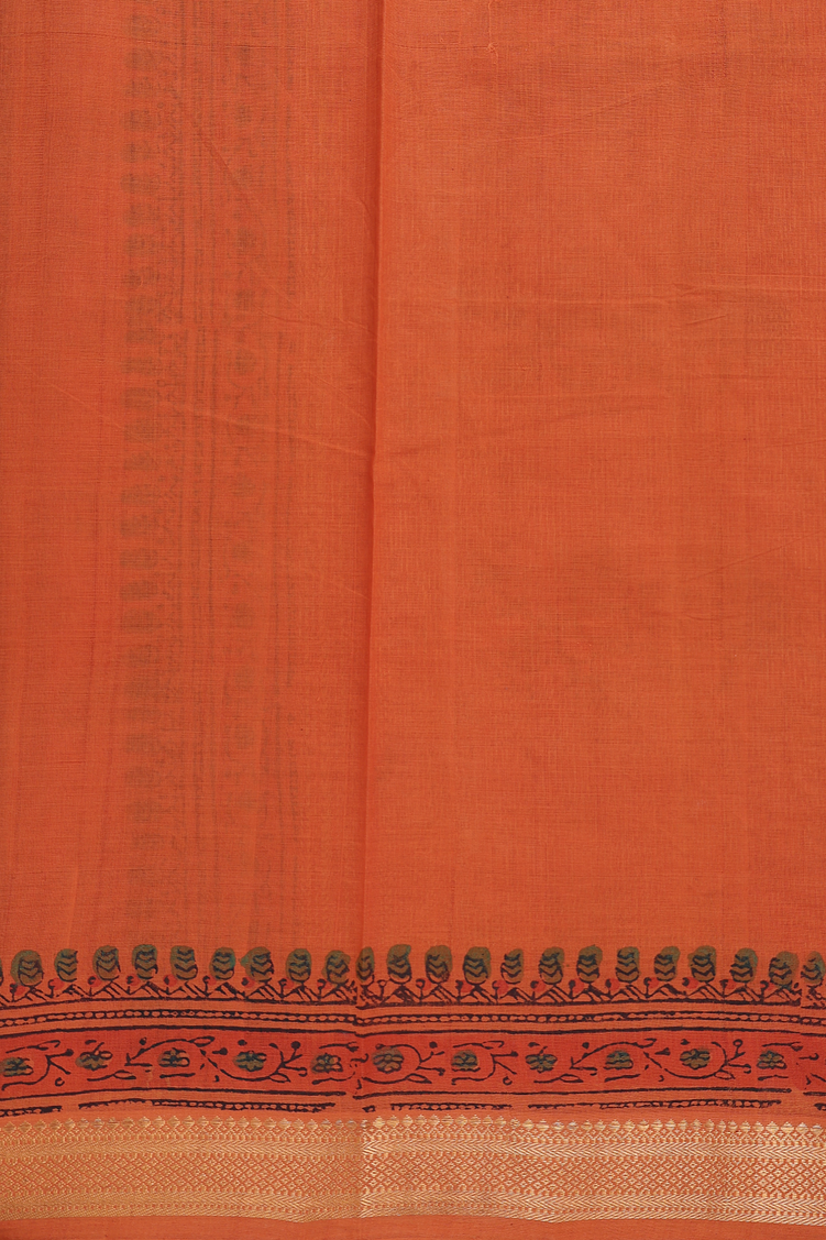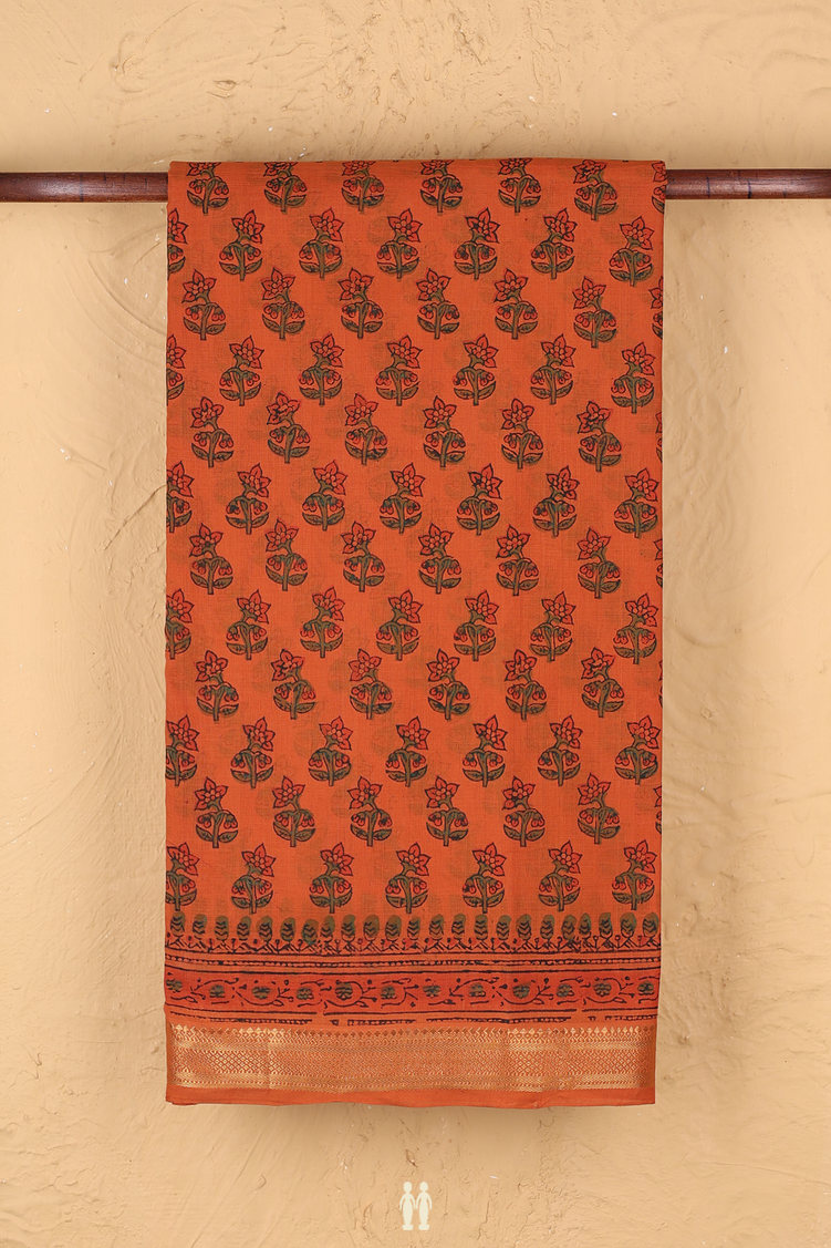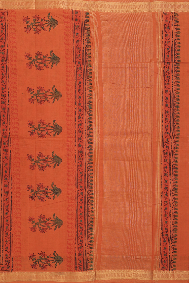Mangalagiri Cotton Saree In Orange With Floral Printed Design